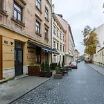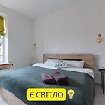 Le cadre principal dans le quartier "Plosha Rynok" à Lviv permet d'accéder à l'Opéra de Lviv, qui se trouve dans un rayon de 500 mètres. Le domicile de 30 m^2 se trouve à quelques minutes de route de Lviv High Castle Park et à 15 minutes en voiture de l'aéroport international de Lviv. Le Théâtre académique Les-Kourbas de Lviv et cimetière Lychakivskiy sont dans une zone de 2 km.